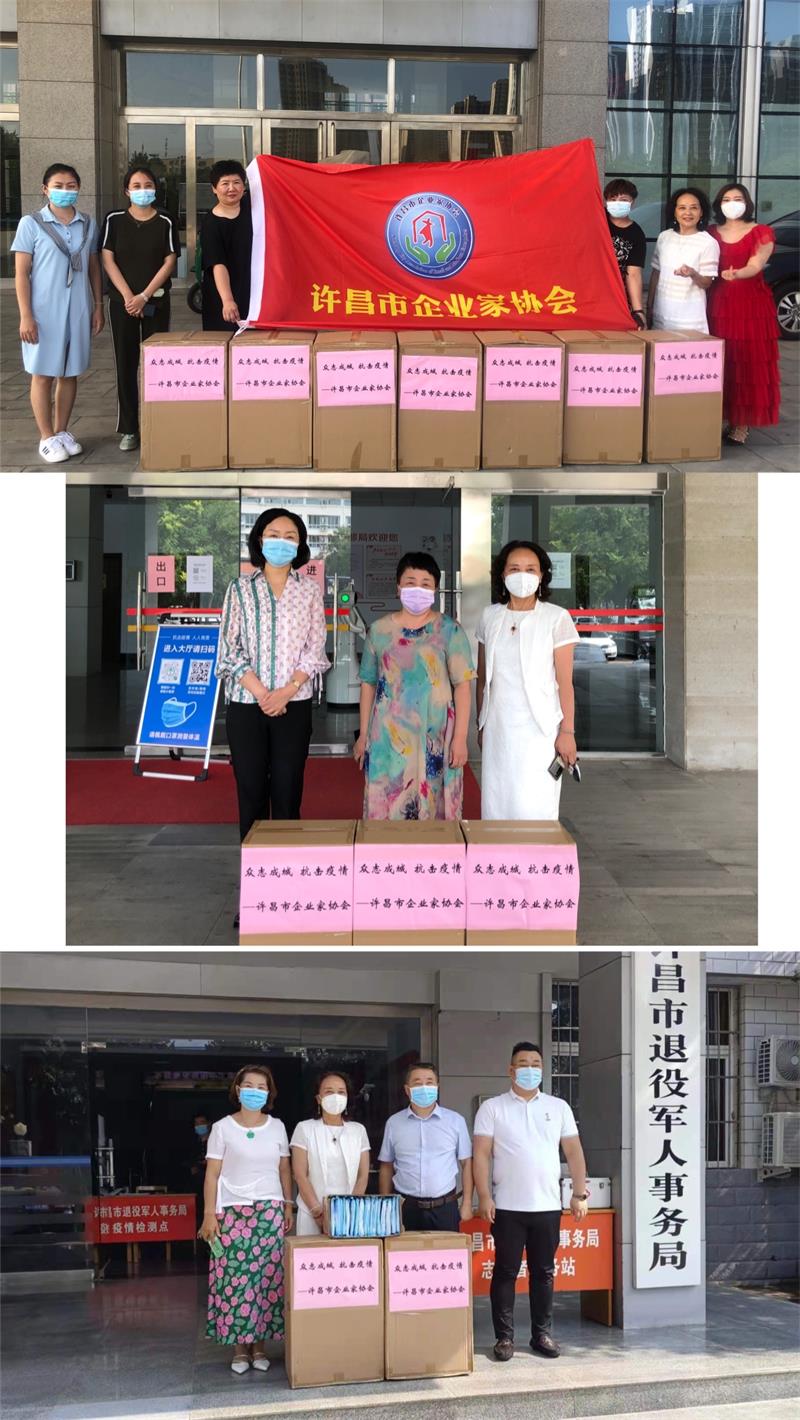 早在疫情到達(dá)許昌的前幾天,協(xié)會會員河南柏毅醫(yī)用輔料有限公司總經(jīng)理孔建合,為協(xié)會捐贈一批N95口罩,用于疫情防控,緊接著在黃秘書長的帶領(lǐng)下,本著“防控疫情 人人有責(zé)”的精神,一方面先后前往魏都區(qū)政府、許昌市婦聯(lián)、許昌市退役軍人事務(wù)局捐贈N95口罩,另一方面十二位值班會長成立12個“送清涼 抗疫情”小分隊,冒著酷暑,深入到每一家會員企業(yè),一是送去協(xié)會的溫情,二是了解企業(yè)生產(chǎn)經(jīng)營中遇到的難題,想辦法幫助會員度過難關(guān)。在疫情嚴(yán)峻的狀態(tài)下,協(xié)會做到了“生命重于泰山 防控不落一人”,感謝無私奉獻(xiàn)捐贈抗疫物資的孔總,感謝十二位值班會長團(tuán)結(jié)一致眾志成城抗擊疫情的精神!
