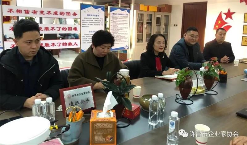 2021年12月30日下午,許昌市委統(tǒng)戰(zhàn)部副部長(zhǎng)、工商聯(lián)黨組書(shū)記寇玉平、工商聯(lián)副主席張濤輕車(chē)簡(jiǎn)從、深入許昌市企業(yè)家協(xié)會(huì)調(diào)研指導(dǎo)工作,并與企業(yè)家協(xié)會(huì)負(fù)責(zé)人進(jìn)行了座談交流。秘書(shū)長(zhǎng)黃玉霞、本月值班會(huì)長(zhǎng)范文彥、三月份值班會(huì)長(zhǎng)張水杰、副會(huì)長(zhǎng)董國(guó)良、會(huì)員李海鵬等參加座談。座談會(huì)上,黃玉霞秘書(shū)長(zhǎng)匯報(bào)了今年重點(diǎn)工作安排和會(huì)員企業(yè)發(fā)展情況。