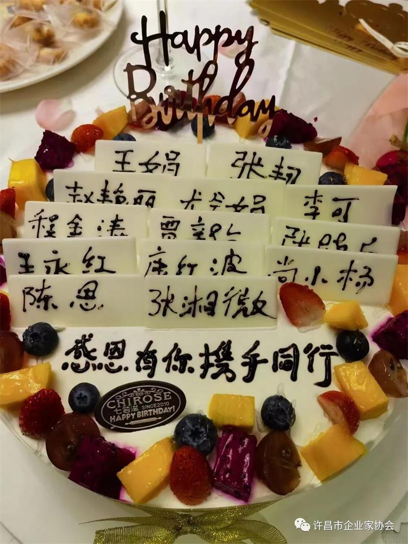 許昌市企業(yè)家協(xié)會舉辦十一月份生日宴,燭光搖曳、歡聲笑語!參加生日宴的會員們笑容滿面,享受著協(xié)會大家庭帶來的溫暖。點點燭光,照亮了每位會員的心;濃濃溫情,讓壽星們久久回味。