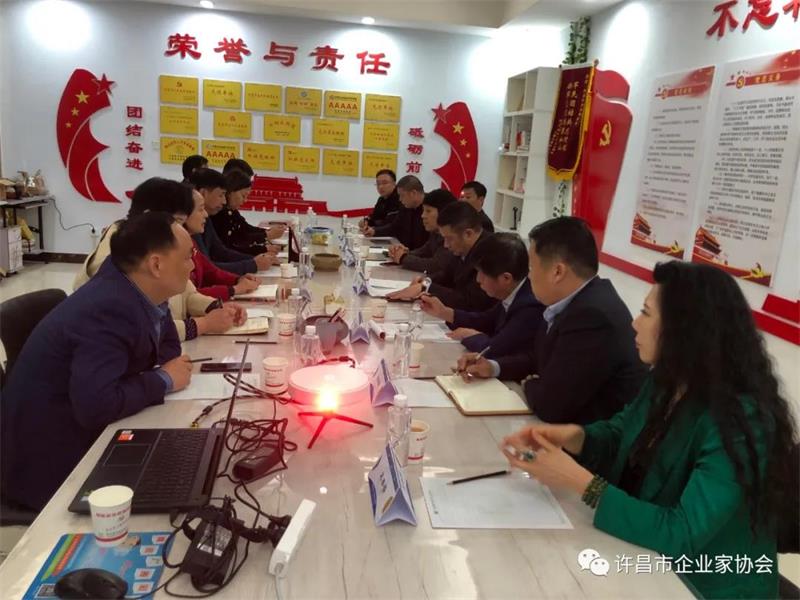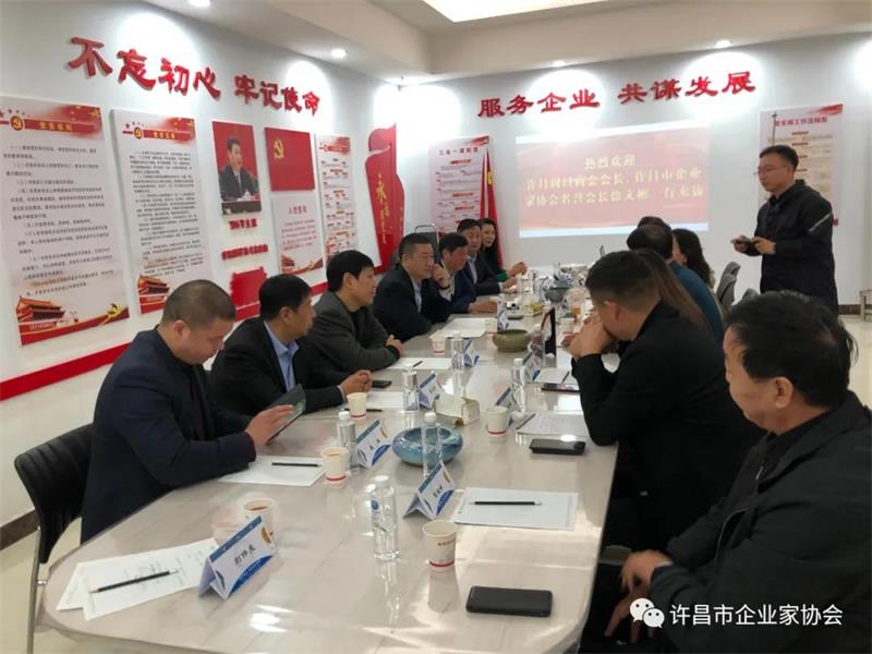 2021年10月17日下午,許昌周口商會會長、許昌市企業(yè)家協(xié)會名譽(yù)會長徐文彬一行9人走訪許昌市企業(yè)家協(xié)會。企業(yè)家協(xié)會秘書長黃玉霞、執(zhí)行會長張建濤、值班會長、許昌許防文化傳媒有限公司總經(jīng)理劉洪毅、副秘書長范文彥、值班會長錢俊霞、汪建成等熱情接待了徐會長一行并舉行了座談。