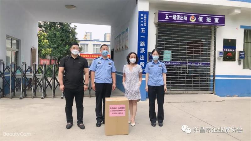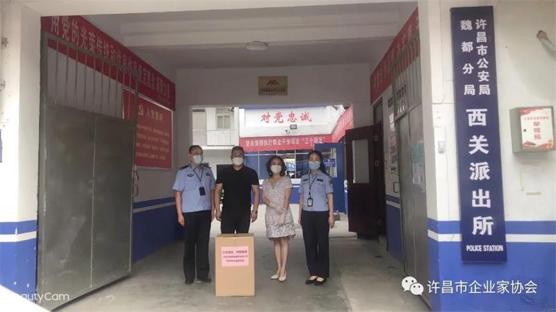 8月10日,許昌杰晧網(wǎng)絡(luò)服務(wù)有限公司聯(lián)合協(xié)會向穎昌派出所、五一路派出所、新興派出所、西關(guān)派出所、西大派出所贈送一批N95口罩,感謝一線干警的辛苦付出,協(xié)會為這樣有大愛的企業(yè)家自豪。