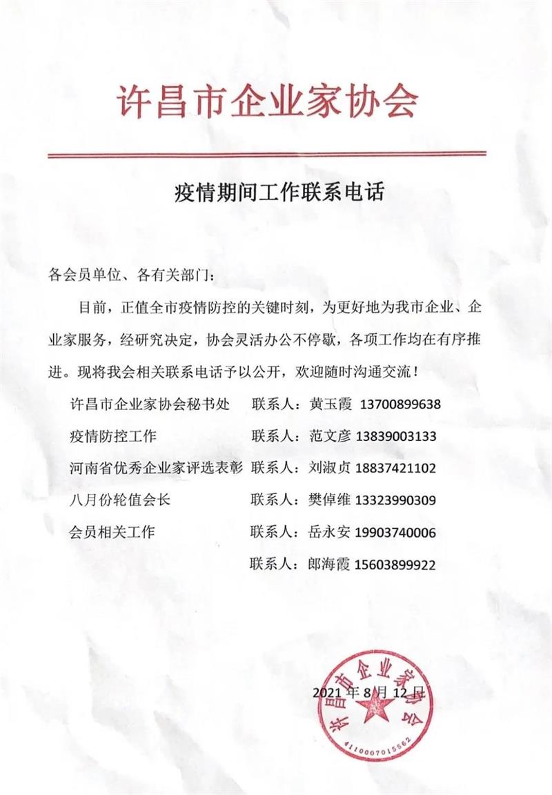 8月12日,為更好服務(wù)我市企業(yè)、企業(yè)家,協(xié)會靈活辦公不停歇,協(xié)會將相關(guān)聯(lián)系電話予以公開,歡迎隨時溝通交流!