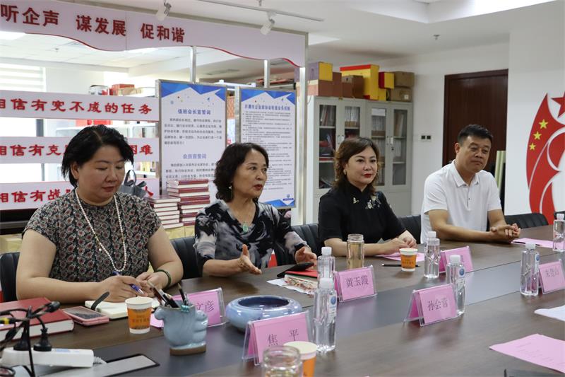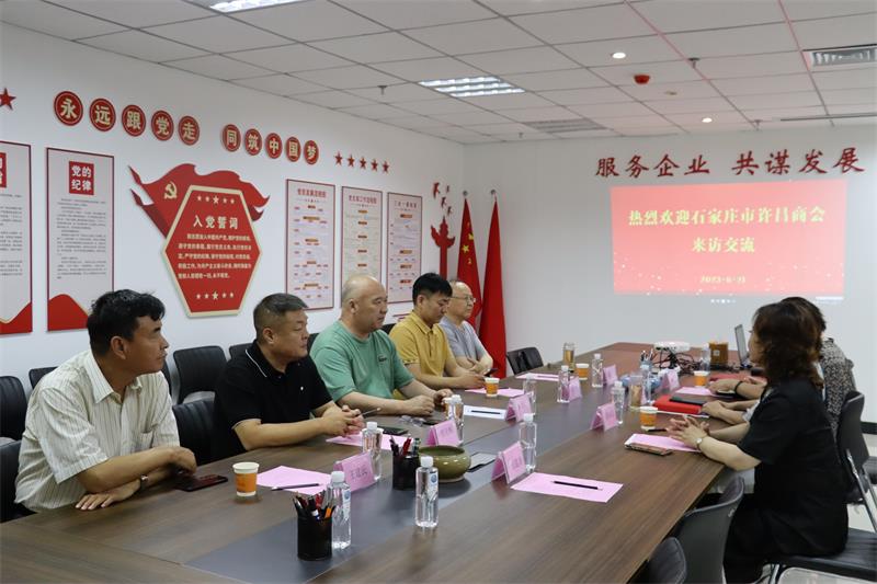 6月21日上午石家莊市許昌商會會長朱登山、 執(zhí)行會長孫會營、賈克輝、秘書長焦平、副秘書長王建民一行5人蒞臨我會參觀交流。市工商聯(lián)副主席曲釗霞對到訪的兄弟商會表示熱烈歡迎,我會秘書長黃玉霞、執(zhí)行會長張建濤、副秘書長范文彥熱情接待并進(jìn)行座談交流。 通過參觀文化墻、觀看宣傳片向來賓展示了協(xié)會歷程和發(fā)展情況。