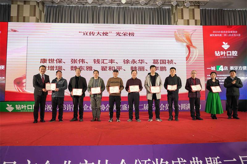 辭舊迎新,歲回律轉(zhuǎn)。揮手告別難忘的2023,昂首跨入充滿希望的2024。1月13日下午,由許昌市鉆葉口腔連鎖總冠名的“同心同行?共享共贏”許昌市企業(yè)家協(xié)會2023年度頒獎盛典暨二屆三次會員大會在中原大酒店百合廳成功召開。協(xié)會邀請了中共魏都區(qū)委、市工商聯(lián)、市發(fā)改委、市黨史和地方志研究室、市民政局、市婦聯(lián)、許昌人才集團、市廣播電視臺、河南映象網(wǎng)、許昌日報社、許昌市商丘商會等相關部門領導及協(xié)會會員200多人參加了本次年會。