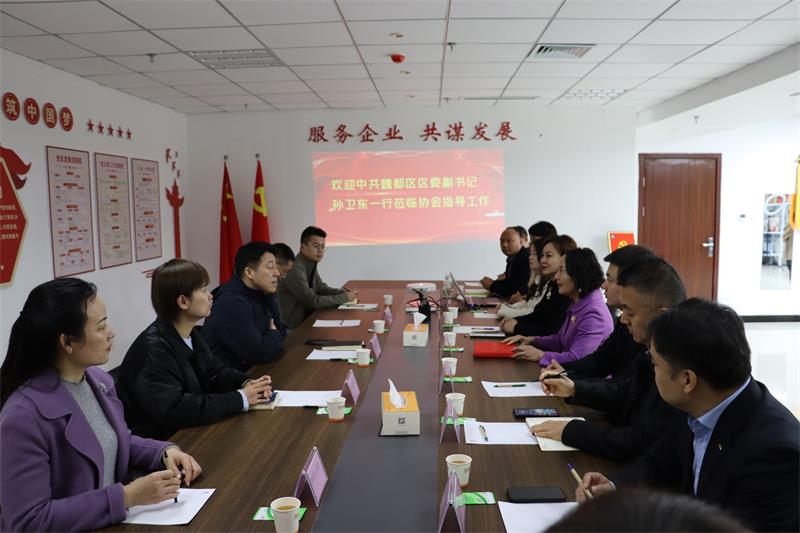 3月13日上午,魏都區(qū)委副書記、政法委書記孫衛(wèi)東一行蒞臨企業(yè)家協(xié)會調(diào)研指導(dǎo)工作,魏都區(qū)總工會、團(tuán)區(qū)委、區(qū)婦聯(lián)等單位主要負(fù)責(zé)同志一同前往。企業(yè)家協(xié)會秘書長黃玉霞等十家企業(yè)代表參加座談。